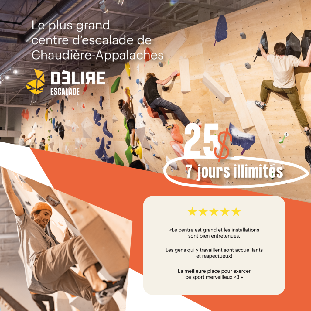- 14 jours d’escalade pour 35$ (offre valide du 22 novembre au 26 novembre inclusivement)