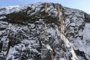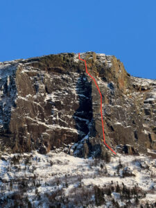 (200m, 5.10d, Bérubé-Frick, 1974), première ascension hivernale en solitaire par Vincent Landry.