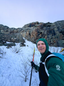 Nous sommes le 15 mars, et la fin de l’hiver approche à grands pas. Je reviens tout juste d’un voyage d’escalade dans les Rocheuses canadiennes, et le temps est désormais compté. Physiquement, et surtout mentalement, je me sens prêt à tenter ce projet. Le 20 mars marque officiellement la fin de l’hiver, et il est important pour moi de réaliser cette ascension selon le calendrier hivernal, donc avant cette date. La semaine de mon retour, la seule journée où la météo semble permettre une tentative est le 18 mars. Malheureusement, les prévisions annoncent -25 °C au thermomètre, avec un ressenti pouvant atteindre -36 °C avec le vent. En fonction de l’orientation du pilier, le soleil n’atteint la paroi qu’aux alentours de 13 h. Je vais donc passer la majeure partie de la journée à grimper à l’ombre, dans des conditions particulièrement rigoureuses.